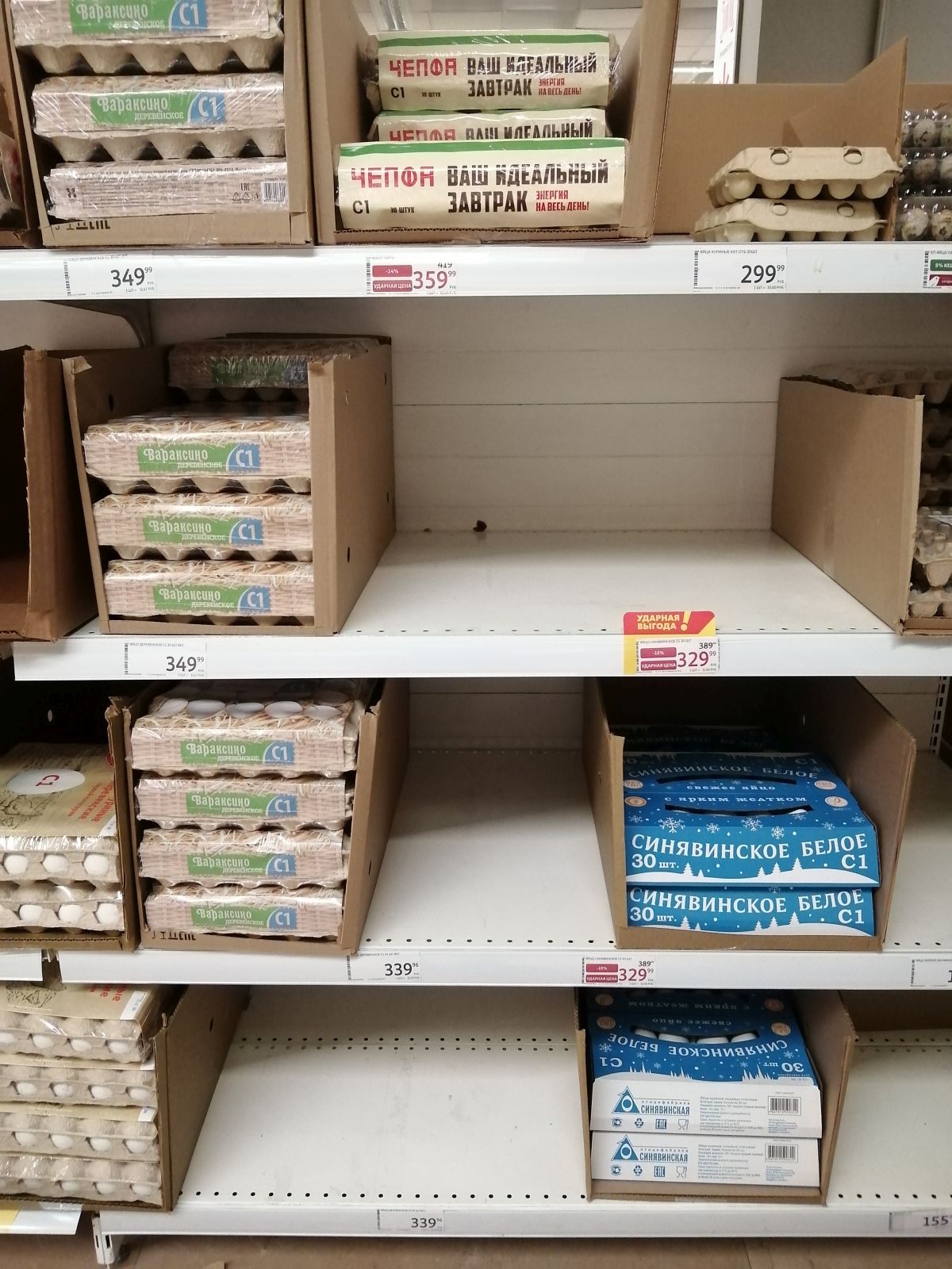 Фотографии полок в сети продовольственных магазинов-дискаунтеров "АТАК"