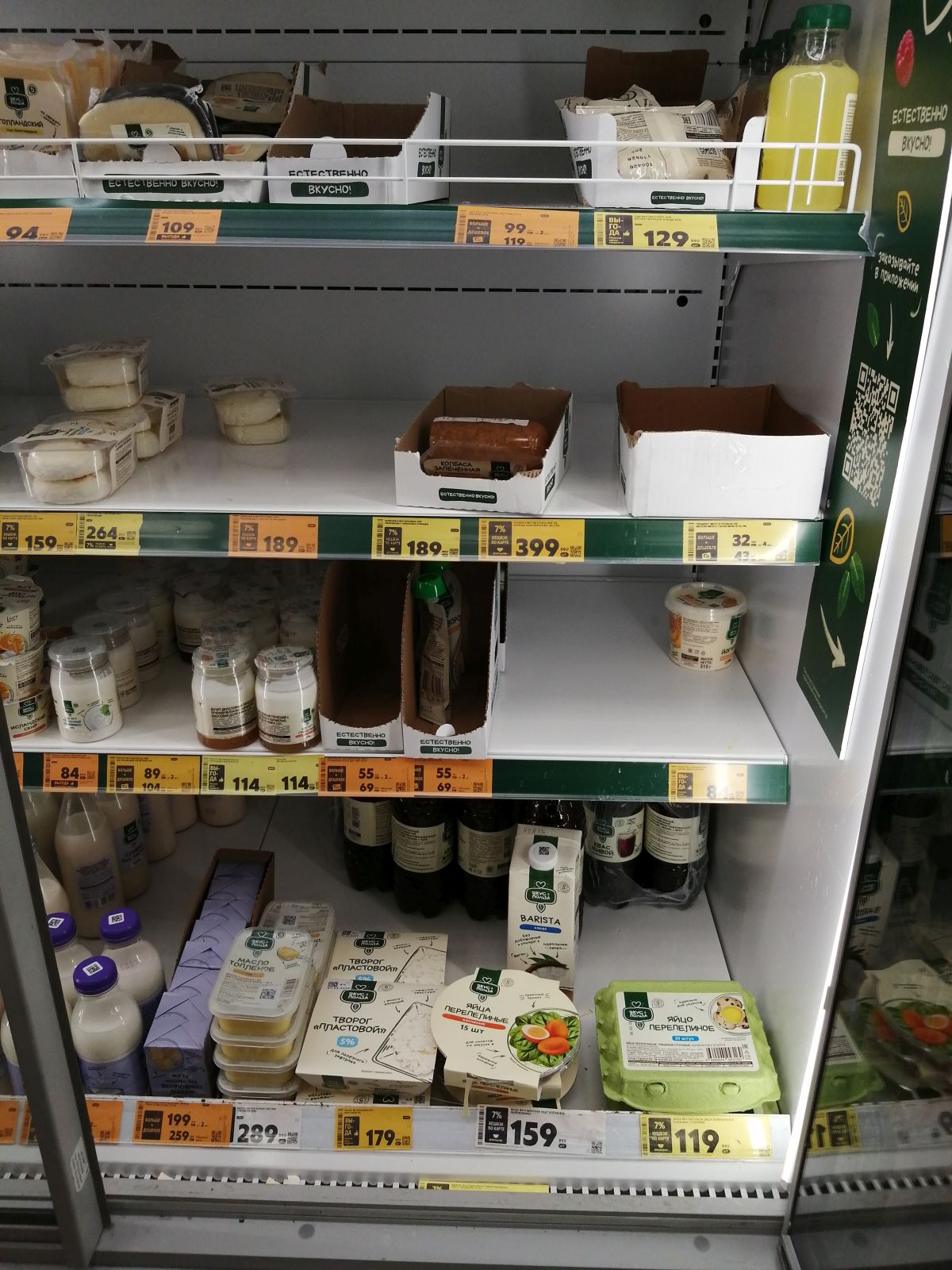 Фотографии полок в федеральной торговой сети "Пятерочка"